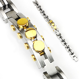 316L Stainless Steel Bracelet with IP Black Links & Gold Bolts