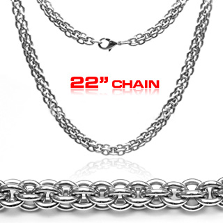 22" Inch 316L Stainless Steel 6mm Double Round Link Necklace Chain