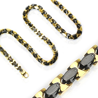 316L Stainless IP Gold and Black Square Necklace