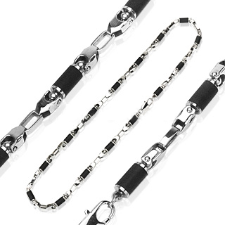 316L Stainless Steel and Rubber Two Tone Fancy Necklace