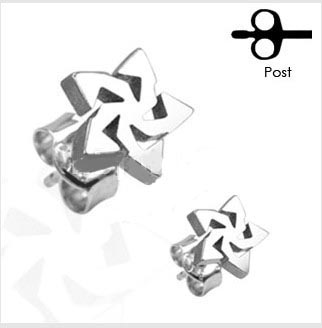 Pair of 316L Stainless Steel Tribal Star Ear Stud 20GA