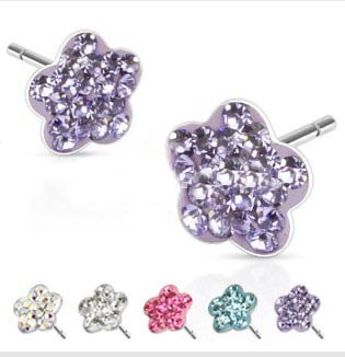 Pair of 316L Surgical Steel Multi Paved Flower Ferido Stud Earring 20GA