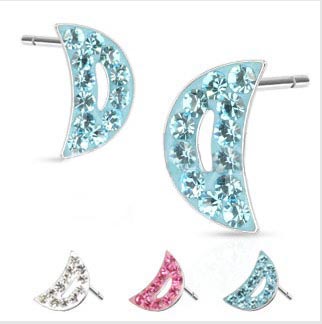 Pair of 316L Surgical Steel Multi Paved Crescent Moon Ferido Stud Earring 20GA