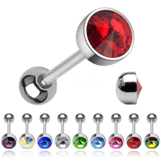 316L Surgical Steel Barbell with Press Fit 7mm Swarovski Crystal Flat Top Ball