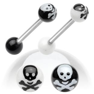 Description : 316L Surgical Steel Barbell with Crossbone UV Balls