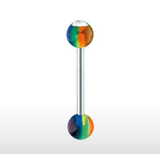 Description : Barbell w/ Clear Gem Set Rainbow Stripe UV Ball