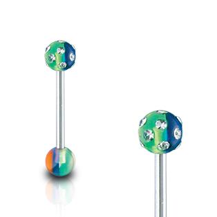 Discription : Barbell w/ Clear Multi Gem Set Rainbow Stripe UV Ball