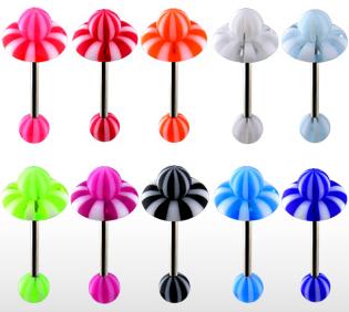 Description : Barbell with UV Candy Stripe Ball And Matching Color UV Candy Stripe Lifesaver.