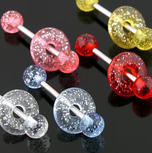 Description : Barbell with UV Glitter Balls and Matching Color Glitter Lifesaver.
