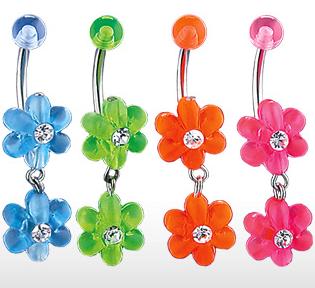 Description : Navel Ring w/ UV Flow/ Flower Dang