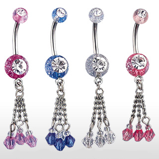 Description : Navel Ring w/ Glit 2-Gem& 3-Chain Dangle
