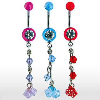 Description : UV 1-Gem Navel Ring w/ Bead & 2-Dices