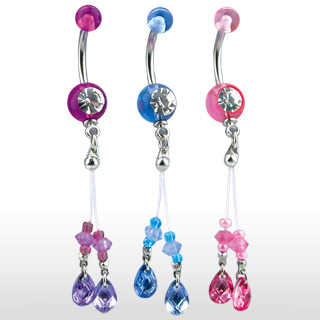 Description : UV 1-Gem Navel Ring with Dangling beads