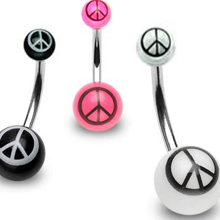 Description : 316L Surgical Steel Navel with Peace Sign UV Ball
