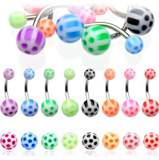 Description : 316L Surgical Stainless Steel Navel Rings with UV Soccer Balls