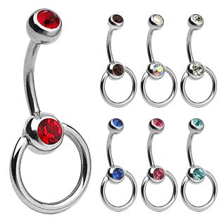 Description : 316L Surgical Stainless Steel Double Jeweled Navel Rings w/ Slave Rings