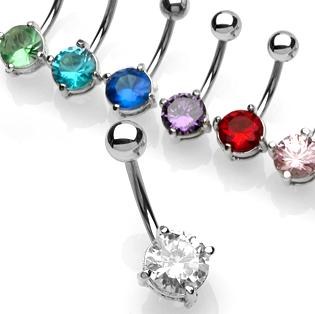Description :Navel Ring w/ Prong Set 7mm Round CZ