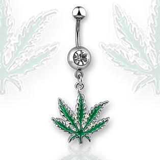 Description : Navel Ring w/ 1-Gem Clear/Green Potleaf
