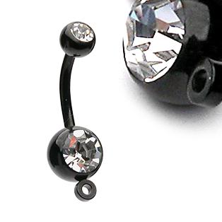 Description : Black Titanium Plated Double Gem Navel Ring w/Steel Hoop for Add-ons