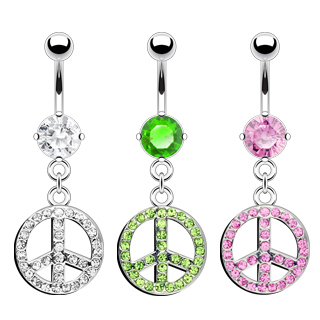 Description : Single Prong Set Gem Navel w/CZ Paved Peace Sign Dangle