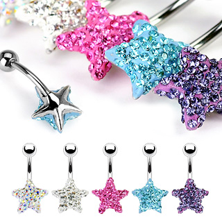 NSD1006 316L Surgical Steel Navel Ring with Swarovski Multi Crystal Ferido Star