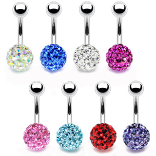 NSD1003 316L Surgical Steel Navel Ring with Swarovski Multi Crystal Ferido Ball