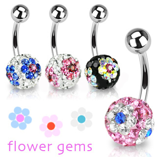 NSD1002 316L Surgical Steel Navel Ring with Swarovski Crystal Ferido Multi Flower Ball