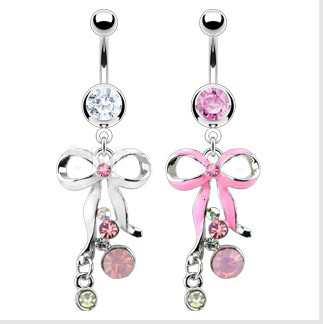 316L Surgical Steel Navel Ring with Epoxy Bow Tie with CZ Clusters