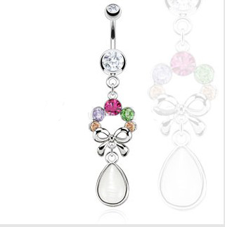 316L Surgical Steel Multi CZ with Ribbon and Large Teardrop Gem Dangle Navel Ring