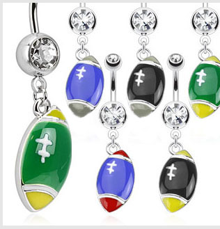 316L Surgical Steel Navel Ring with Multi Colored Football Dangle