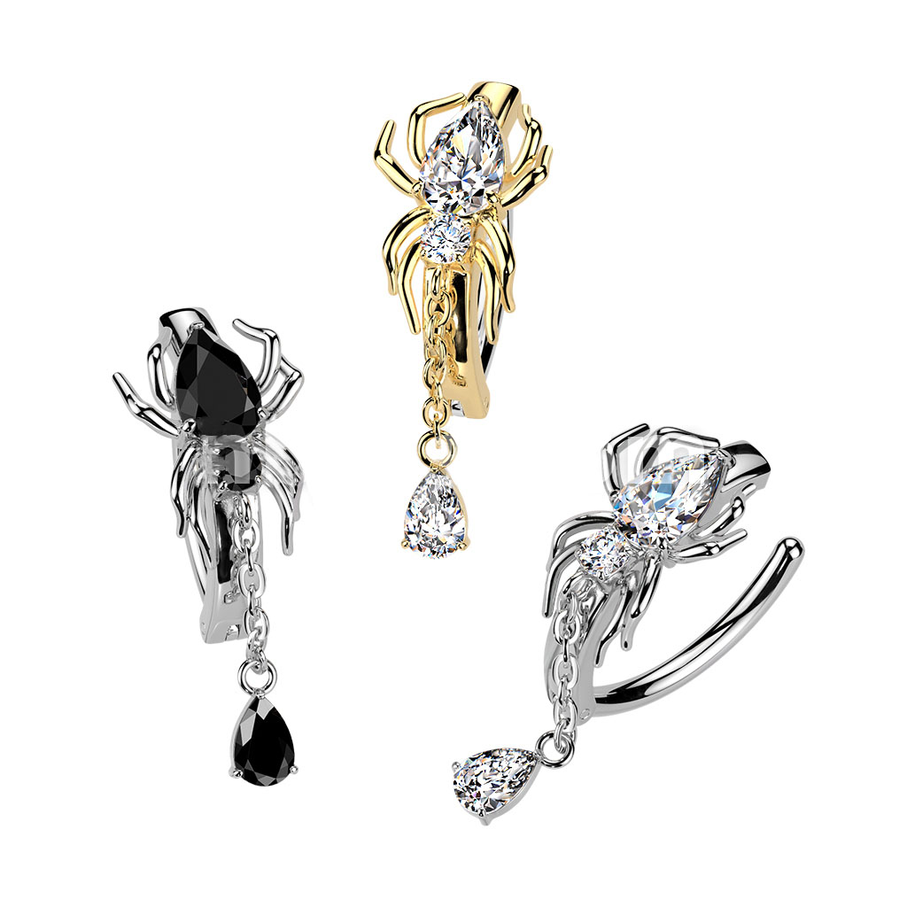 RHNQ21 316L Hinged CZ Spider Belly Button Ring With Teardrop Dangle