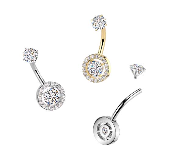 NSI35 All 316L Internally Threaded Prong Set Round & Pave CZ Belly Ring With CZ Top