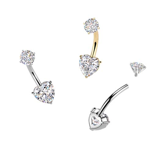 NSI31 All 316L Internally Threaded Prong Set Heart CZ Belly Ring With CZ Top