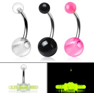 Description : 316L Surgical Stainless Steel Navel Ring with UV Ball with Hole for Glow Sticks.