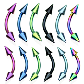 Description : Titanium Anodized Over 316L Surgical Stainless Steel Curved Barbell w/ Spikes