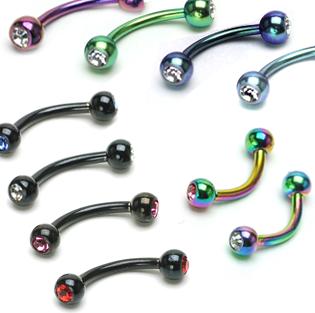 Description : Titanium Anodized Over 316L Surgical Stainless Steel Eyebrow with 2-Press Fit Gem Balls