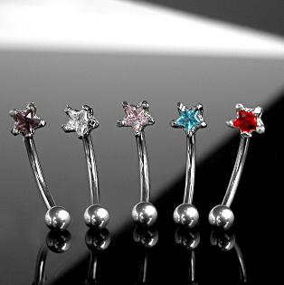 Description : 316L Surgical Stainless Steel Eyebrow Curves with Prong set Star CZ.