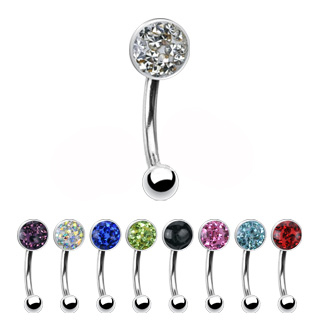 316L Surgical Steel Curve Eyebrow with Flat Austrian Crystal Paved Ferido Gem Top