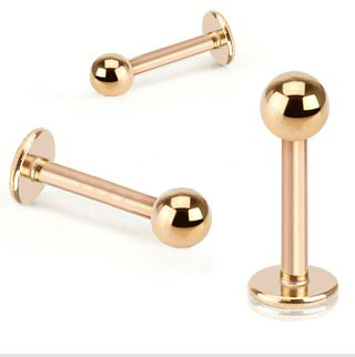 Rose Gold IP Over 316L Surgical Steel Basic Labrets/Monroe SIZE: 16 GA 1/4" 3mm 16 GA 5/16" 3mm . 16 GA 3/8" 3mm . 16 GA 7/16" 3mm 14 GA 1/4" 3mm 14 GA 5/16" 3mm 14 GA 3/8" 3mm 14 GA 3/8" 4mm