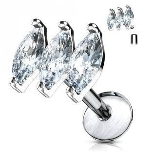Triple Marquise CZ Prong Set Top 316L Surgical Steel Internally Threaded Labret, Monroe, Ear Cartilage Studs