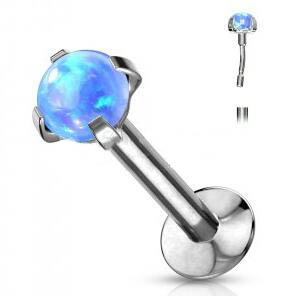 Push In Prong Set Opal Top 316L Surgical Steel Threadless Flat Back Studs for Labret, Monroe, Ear Cartilage, and More