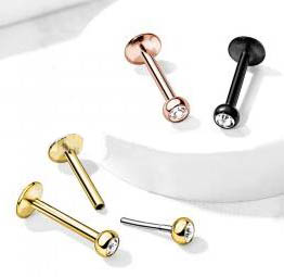 Push In Jeweled Ball Top PVD Over 316L Surgical Steel Threadless Labret, Monroe, Flat Back Stud.