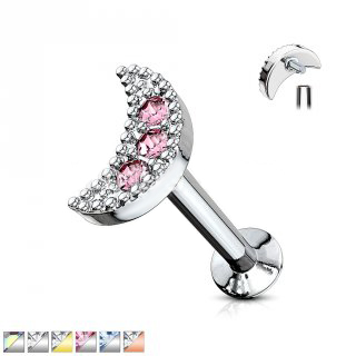 CZ Paved Crescent Top 316L surgical Steel Internally threaded Labret,Monroe, Cartilage Studs