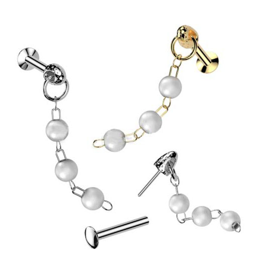 IL25 316L Surgical Steel Threadless Push In Convex Back Stud With Triple Pearl Dangle