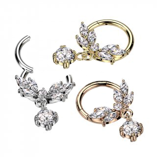 RH072 High Quality Precision 316L Surgical Steel Hinged Segment Ring With CZ Vine and CZ Dangle