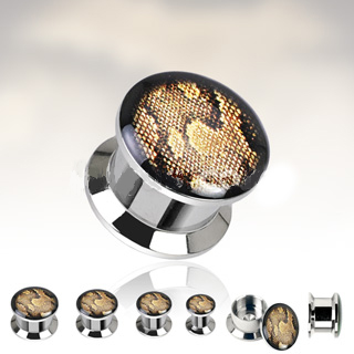 PS28-AS2 316L Surgical Steel Double Flat Flare Screw Fit Plug with 'Python Hide' Print