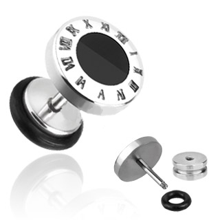 PSFX-42 316L Surgical Steel 16g Fake Plug with Black Round Inlay
