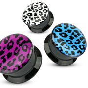 Black Acrylic Double Flat Flare Screw Fit Plug with Leopard Skin Print