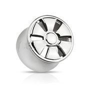 316L Surgical Steel 6-Spoke Wheel Design Double Flared Hollow Tunnel Plug