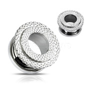 316L Surgical Steel Double Tiered Dia-Cut Gear Loop Top Screw-Fit Tunnel Plug